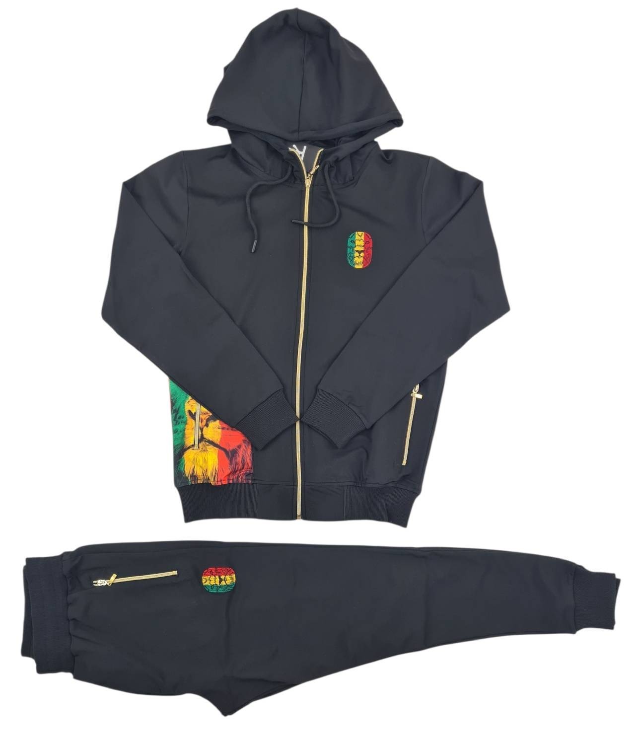 Rasta Lion Slim Fit Tracksuit Hooded Set Lion Rastafari in Black