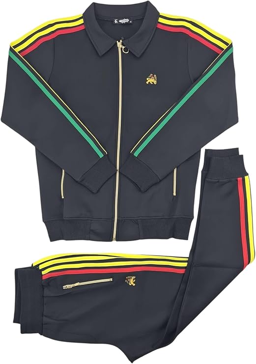Rasta Lion Slim Fit Tracksuit Hooded Set Lion Rastafari in Black