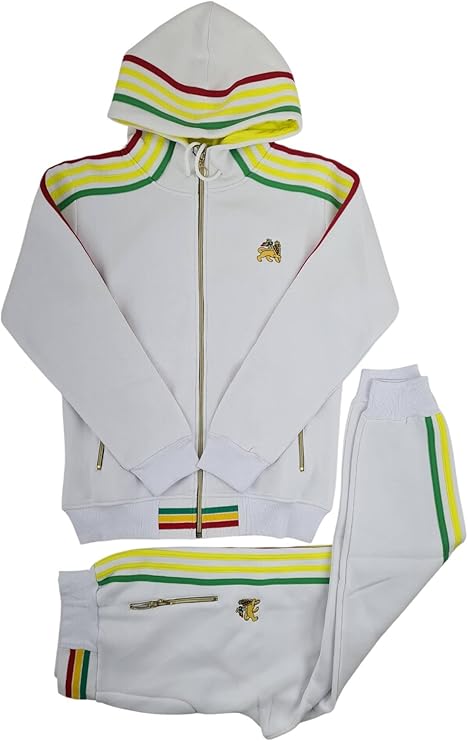 £60.00Rasta Inspired Striped Design Streetwear Full Zip Hoodie Set in White