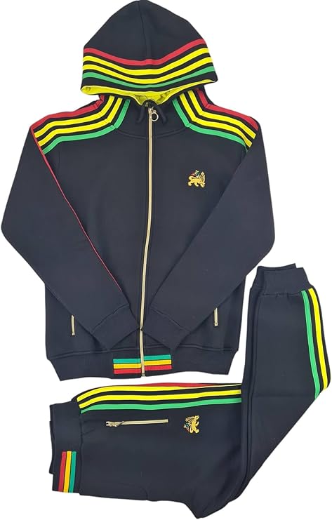 £60.00Rasta Inspired Striped Design Streetwear Full Zip Hoodie Set in Black