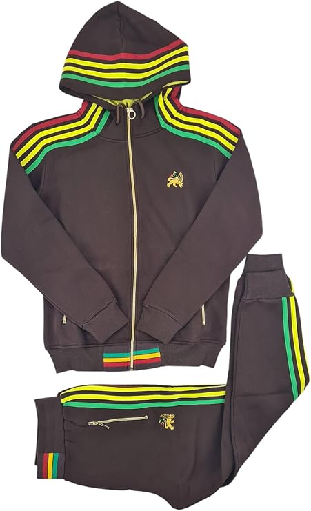 £60.00Rasta Inspired Striped Design Streetwear Full Zip Hoodie Set in Brown